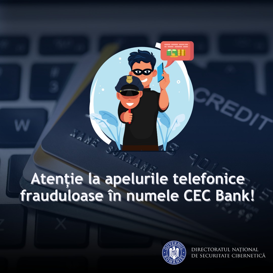 Diverse persoane sunt contactate de indivizi care pretind a fi reprezentanți CEC Bank, susținând că s-ar fi depus o cerere de credit în numele acestora. Scopul real este obținerea de informații sensibile și compromiterea conturilor bancare.