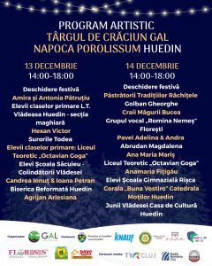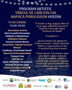 Pe 13, 14 și 19 decembrie, târgul prinde viață cu și mai multă energie. Artiști locali și grupuri din întreaga zonă urcă pe scenă cu colinde, obiceiuri și momente tradiționale ce transformă Huedinul într-o adevărată poveste de iarnă trăită în comunitate.