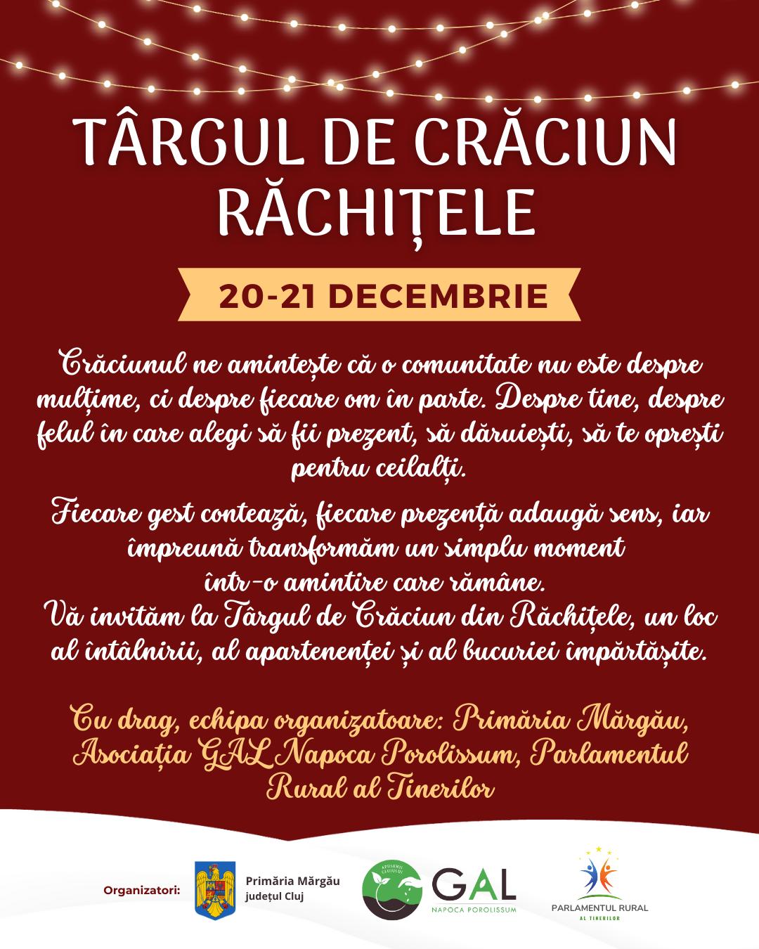 ✨ Crăciunul ne reamintește că o comunitate înseamnă oameni, gesturi și prezență. Vă invităm la Târgul de Crăciun din Răchițele – un loc al întâlnirii, al apartenenței și al bucuriei împărtășite.